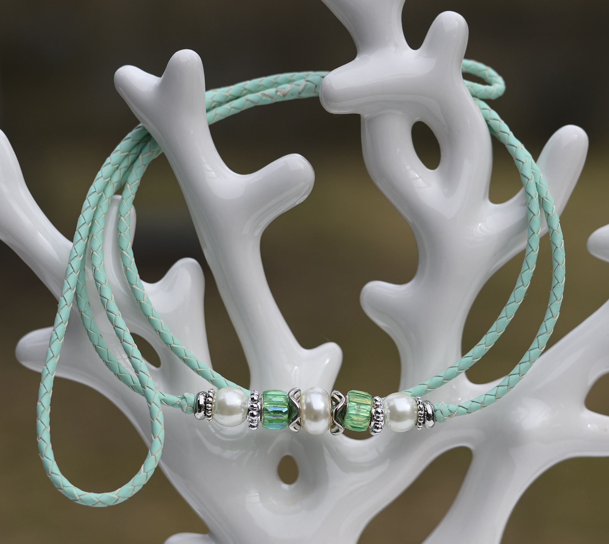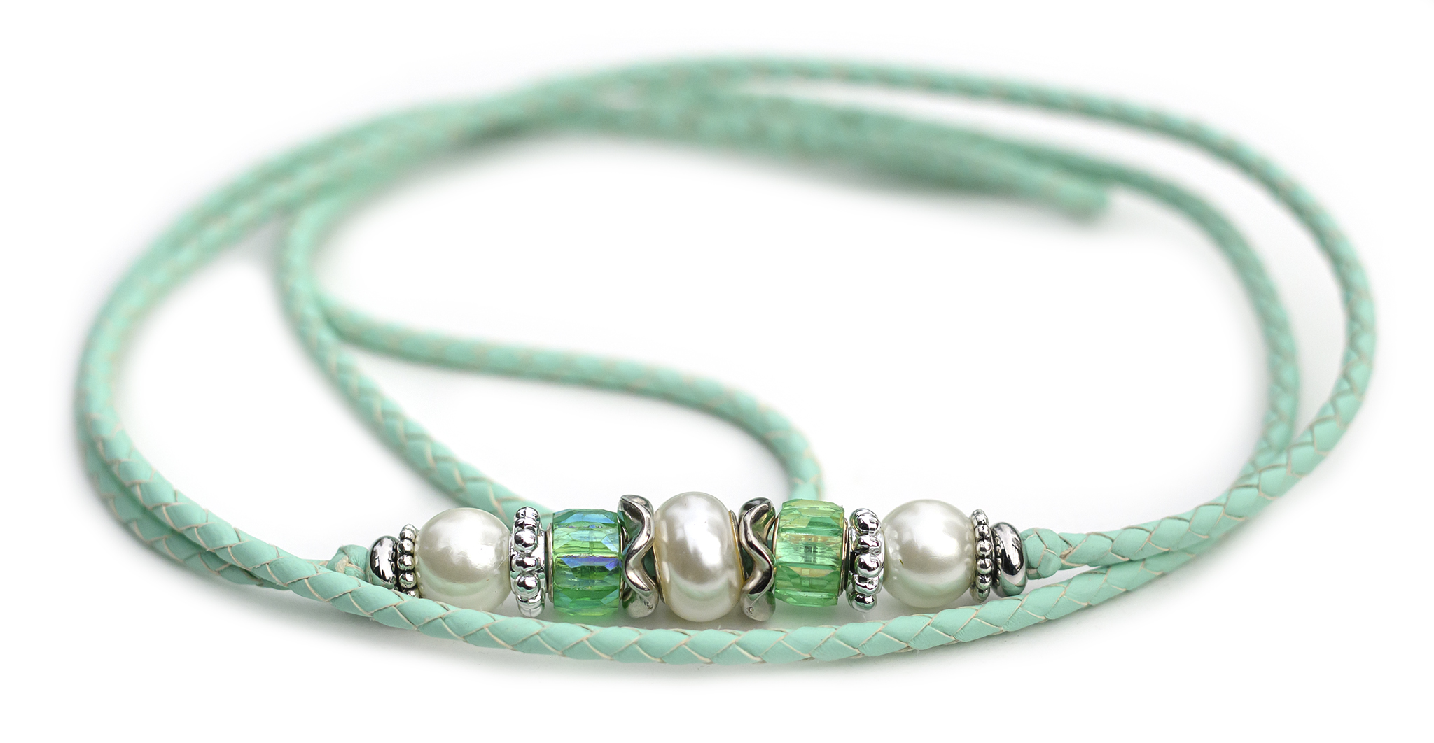 Utställningskoppel i känguruläder, flätat i färgen mint.